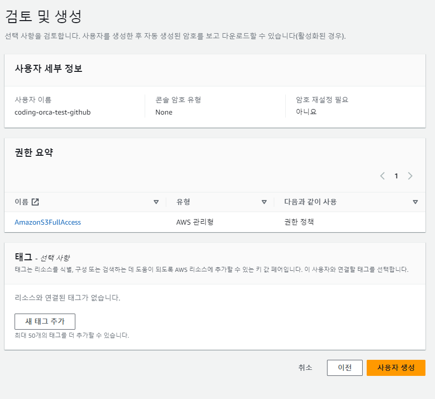 태그를 설정하고 "액세스 키 만들기" 클릭