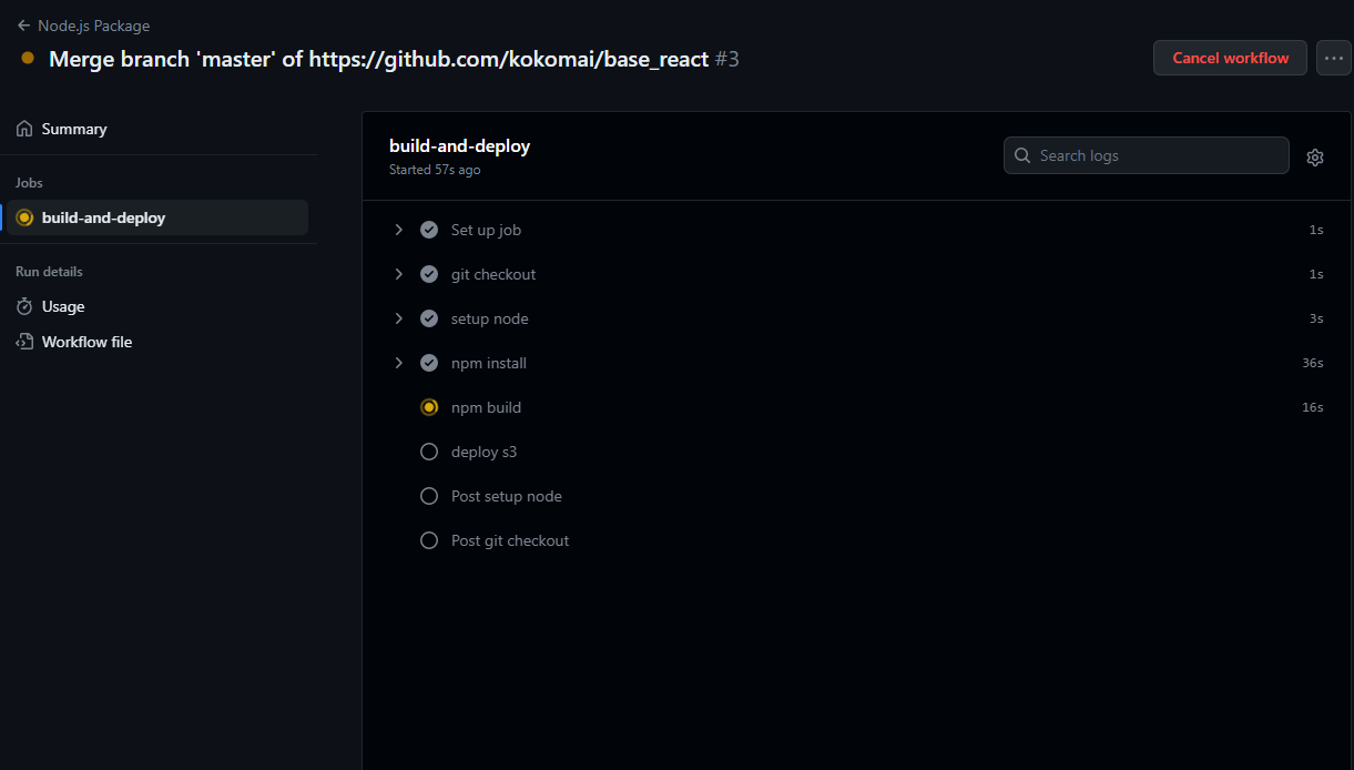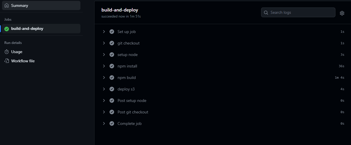 이제 이 yml파일이 master branch에 commit 되면서 자동으로 s3에 빌드/배포될 것이다..!