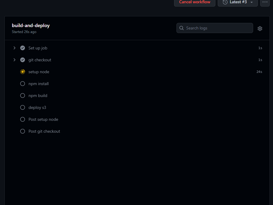 ※ 만일, deploy s3에서 실패할 경우 아까 Settings에서 설정한