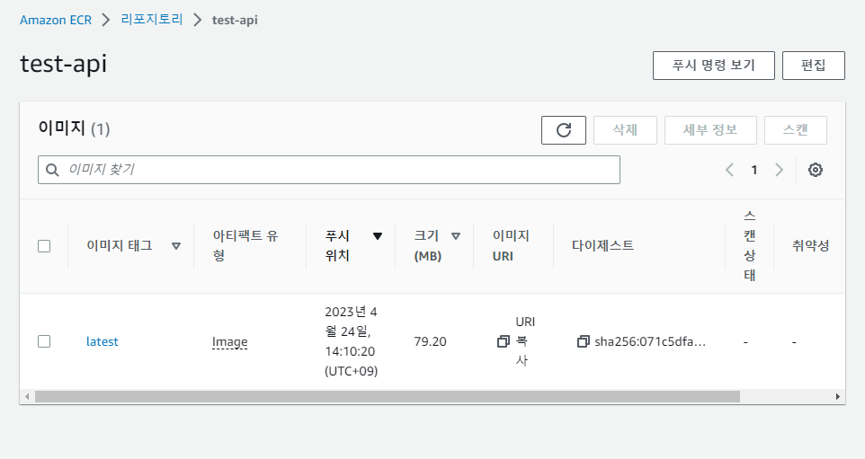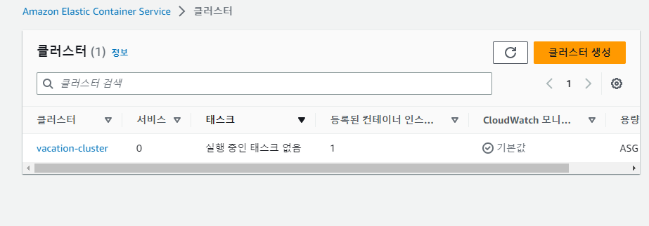 우리가 설정한 이미지 URI의 컨테이너 하나가 활성화 되어있다!
