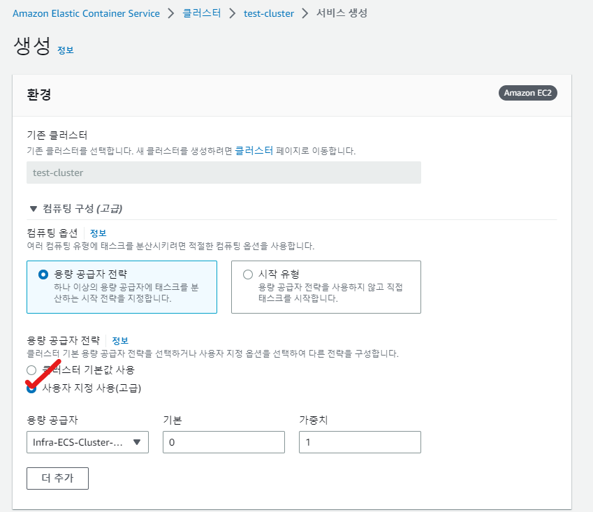 필자는 ECS cluster에서 띄운 EC2에서 용량(자원)을 가져올 것이므로