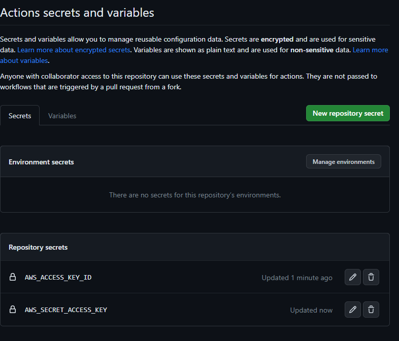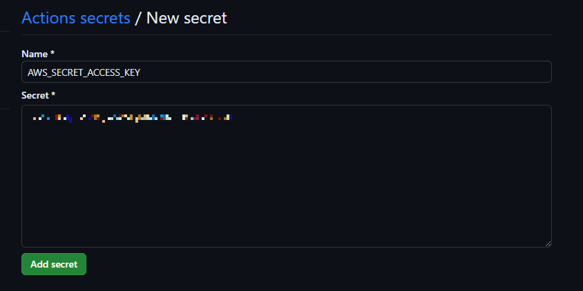 이번에는 AWS_SECRET_ACCESS_KEY라는 이름으로