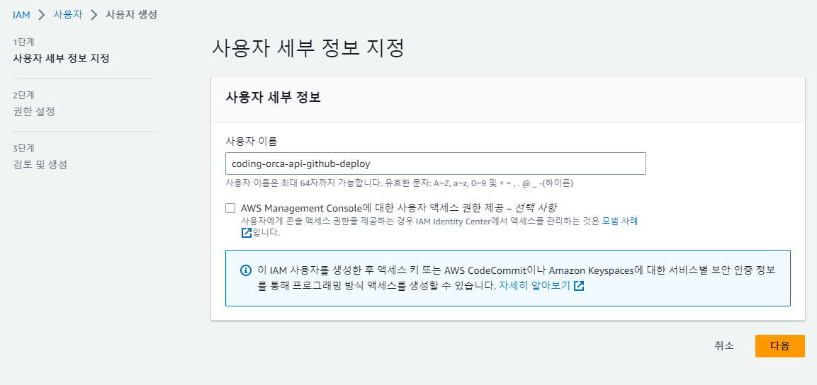 Github에서 사용할 IAM을 먼저 만들어보자.