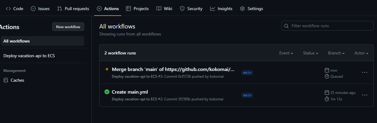 그 다음 Github에서 해당 프로젝트의 Actions를 확인하면...